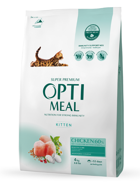 - Сухий корм Optimeal Кіттен для кошенят захищає травну систему завдяки балансу кальцію, фосфору та вітаміну групи D.