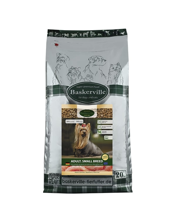 Сухий корм для собак дрібних порід супер преміум класу Baskerville (Баськервіль) має комбінований склад з натуральних компонентів, який гарантує відмінне здоров'я дорослим собакам дрібних порід. Спеціальне харчування для дорослих собак дрібних порід Baskerville Adult Small Breed (Баськервіль Смол Брід) підтримує оптимальну масу тіла, гарантує хороший апетит, відмінний стан шкіри і вовни. Корм виготовлений в Німеччині, де дотримання стандартів якості - завдання №1 для виробника. Даний корм для собак містить всі необхідні поживні речовини, багатий цінні вітаміни і мікроелементи. Дотримуйтесь таблиці дозування.