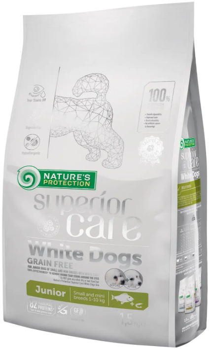 Nature's Protection Superior Care White Dogs Grain Free Junior Small and Mini Breeds 1,5 кг сухий беззерновий корм для цуценят малих порід з білим забарвленням шерсті