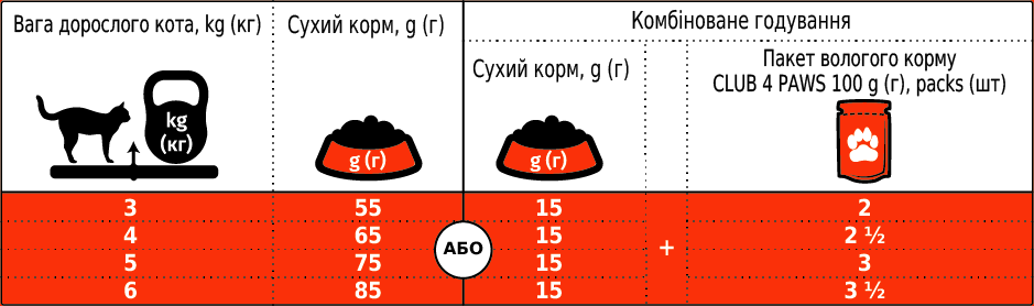 ПОЖИВНА ЦІННІСТЬ (АНАЛІТИЧНІ КОМПОНЕНТИ)КОРМУ:сирий протеїн 32 %, сирий жир 15 %, сира зола 7 %, сира клітковина 2 %, кальцій 1,0 %, фосфор 0,8 %, омега-3 жирні кислоти 0,36 %, омега-6 жирні кислоти 3,33 %.