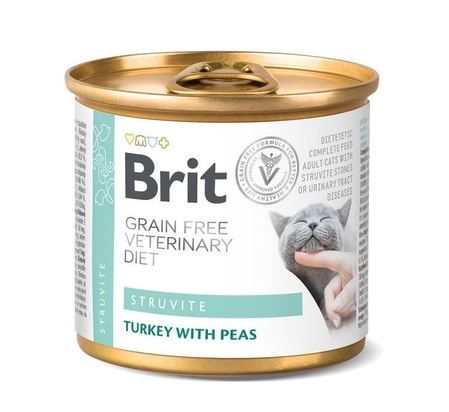 Brit VetDiets Struvite Turkey with Peas Повнораціонний та збалансований дієтичний корм з індичкою та горохом для котів, які страждають захворюваннями нижніх сечовивідних шляхів.