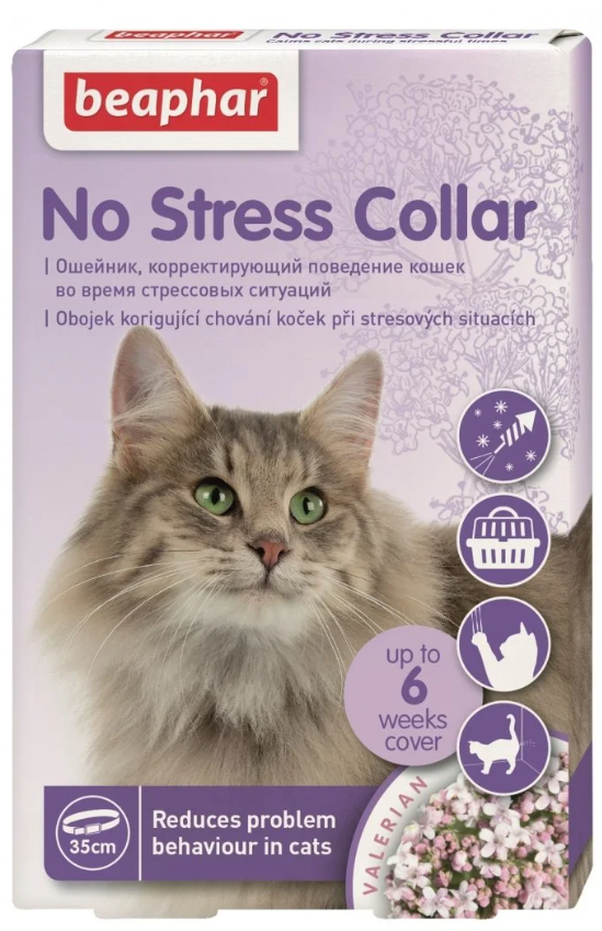 Нашийник для зняття стресу ефективно усуває проблеми поведінки, викликані стресовою ситуацією у котів всіх порід віком старше 12 тижнів. Натуральні та безпечні активні інгредієнти поступово вивільняються протягом усієї дії нашийника. Ефект настає через 1 годину після вдягання нашийника і триває до 6 тижнів. Проявляється помітним поліпшенням поведінки - тварина відчуває спокій, врівноваженість і розслабленість.