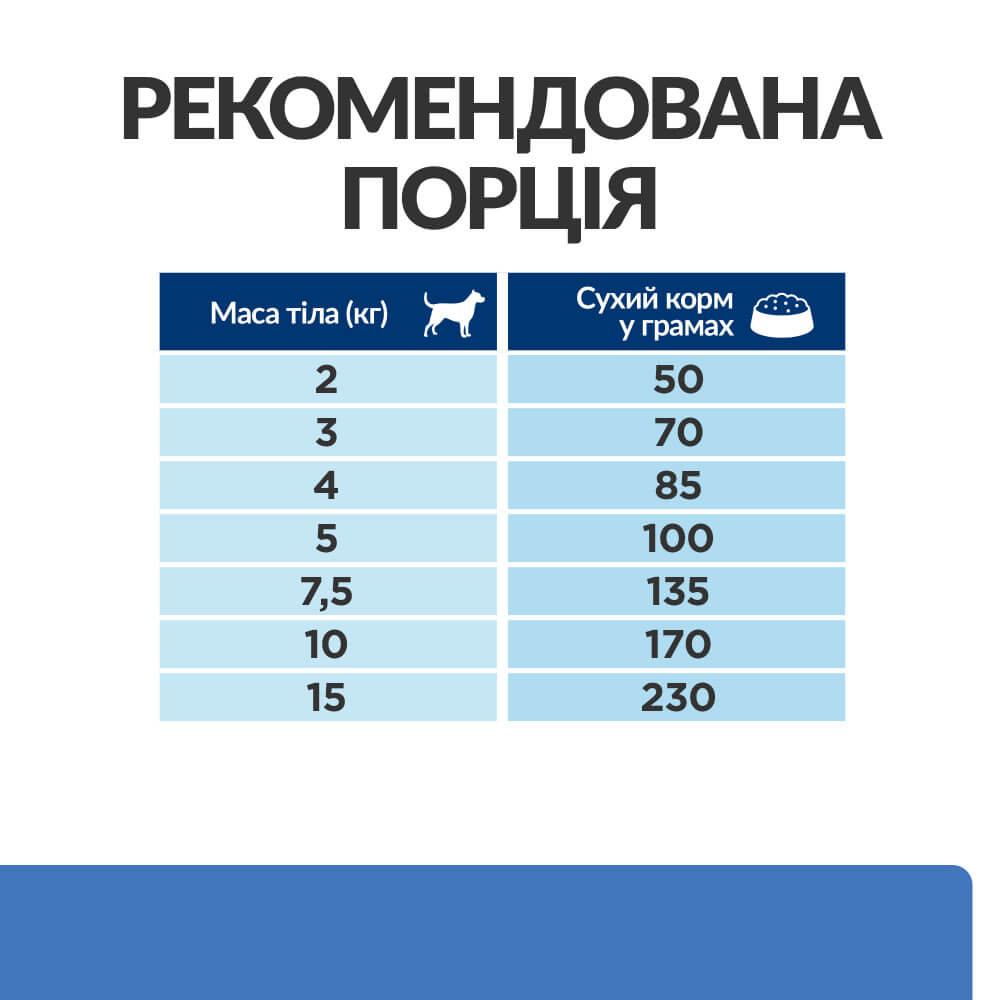 Має менший розмір гранул порівняно з Hill’s Prescription Diet Derm Complete для задоволення потреб собак малих і міні порід.