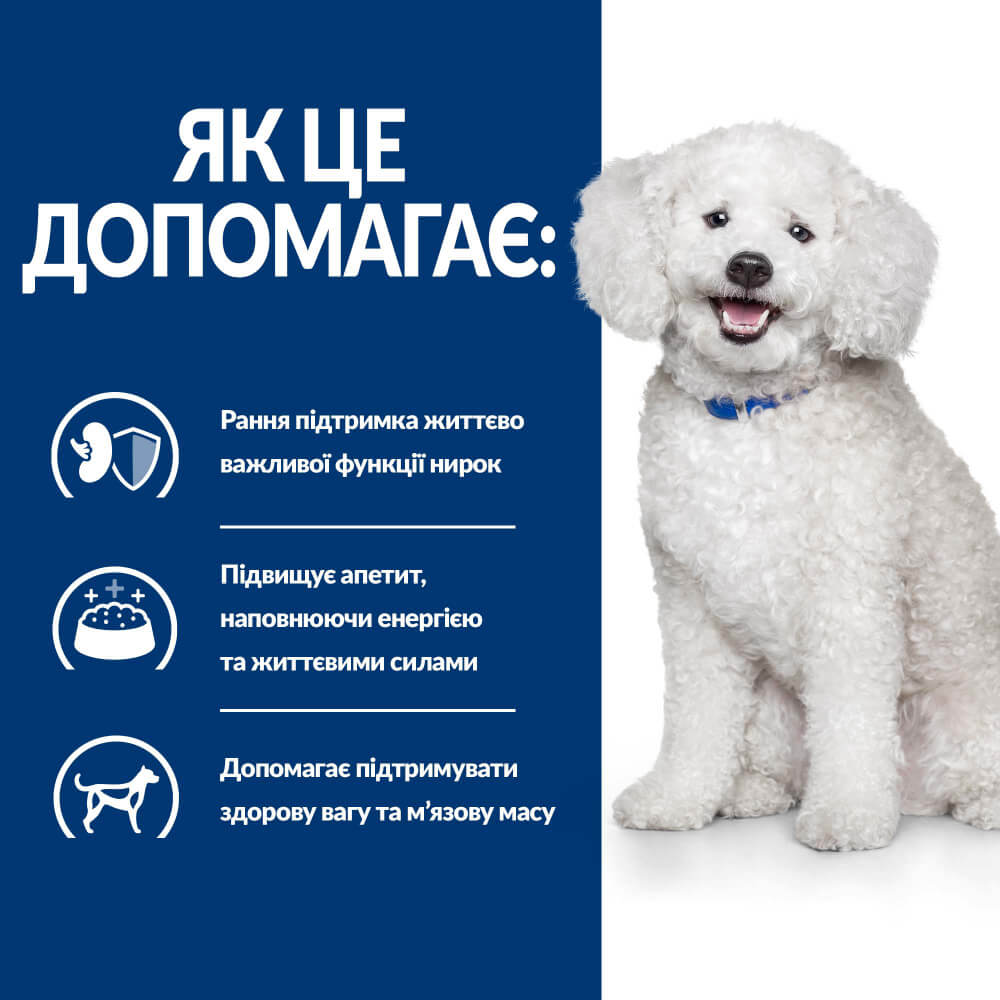 • Підходить як пожиттєвий раціон для собак із хворобою нирок ранніх стадій