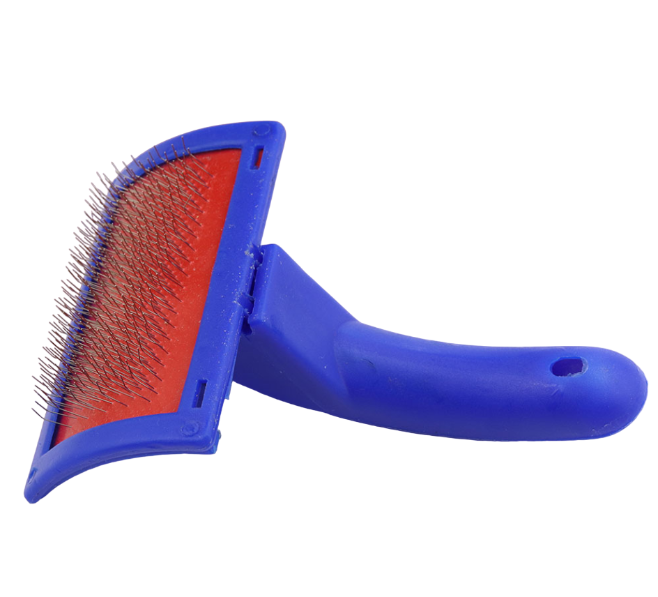 Пуходерка-слікер 10*14.5 см Інструмент для вичісування шерсті, що вилиняла, у собак і кішок. Часто розташовані зубці з нержавіючої сталі із заокругленими кінчиками дбайливо доглядають за шерстю, м'яко виймають відмерлий підшерстя, перешкоджаючи утворенню ковтунів, прочісують і розпушують остевий волосся і тварина виглядає охайним і доглянутим. Пуходерка використовується також для начісування та збивання комірів, штанів та ін. Ці плоскі або злегка вигнуті щітки, виготовлені з тонких сталевих щетинок, допоможуть вам видалити відмерлі волоски шерсті, збиті клаптики або сплутані волоски з вовни тварин. Силіконова ручка проста у використанні. Пуходерка використовується на середньої та довгої шерсті.