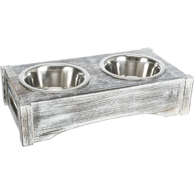 TX-24358 металеві миски,2х0.75л на дерев'яній підставці,42х10х22см,білий