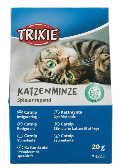 Натуральна трава стимулює ігрову активність кішок. Він складається з листя м'яти Nepeta Cataria, яка викликає у кішки грайливий настрій. Ви можете обробити цю м'яту іграшку або ганчірку кішки. Запах м'яти зберігається протягом тривалого часу. Котяча м'ята абсолютно нешкідлива, навіть якщо кішка ковтає її. Вага: 20 гр.