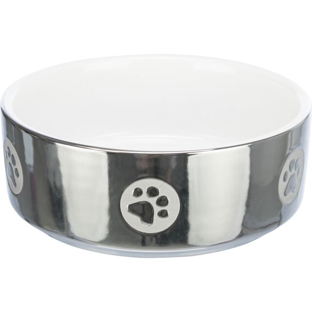 TX-25084 миска керамічна д/собак,0.8л/15см,срібло/білий