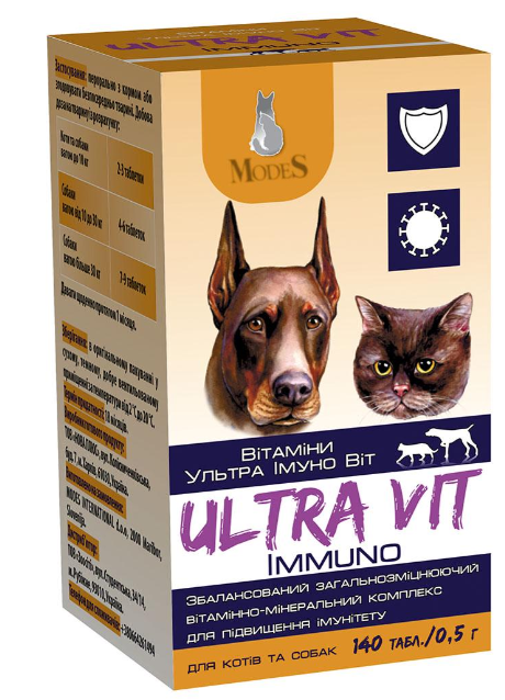 Вітаміни Модес Ультра Імуно Віт для собак та котів 140шт, 0,5г