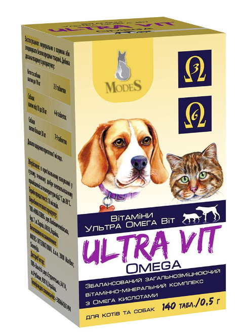 Вітаміни Модес Ультра Омега Віт для собак та котів 140шт 0,5г