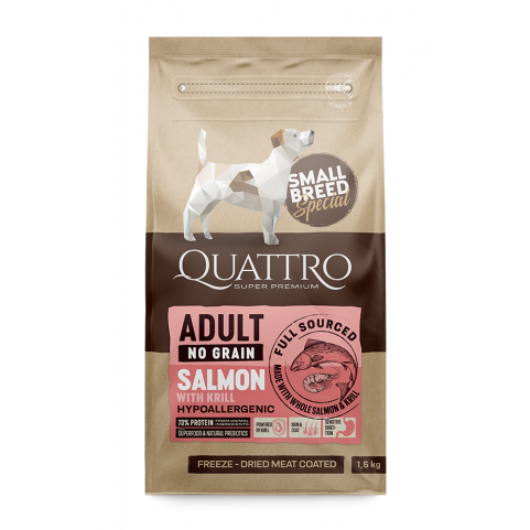Quattro Adult Salmon Small Breed корм для дорослих собак дрібних порід з лососем та крилем 7 кг