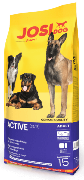 JOSERA JosiDog Active високоенергетичний корм для активних дорослих собак. Поживна безглютенова рецептура забезпечує достатню кількість енергії для дуже активних та спортивних собак.