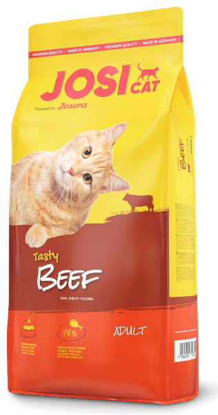 JosiCat Tasty Beef смачна їжа для котів, які люблять яловичину. Корм добре підходить для котів з нормальною або низькою активністю.